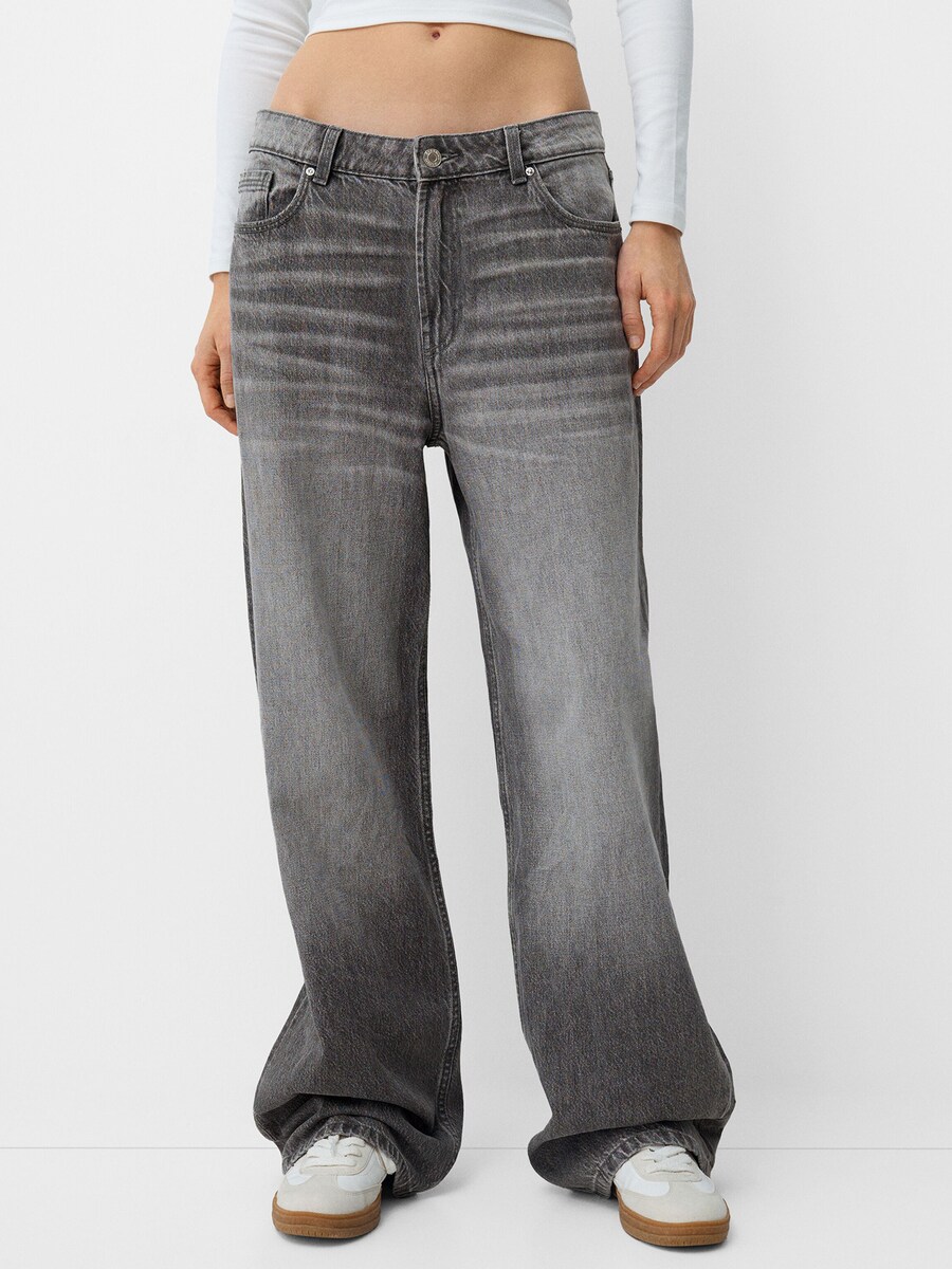 Джинсы свободного кроя Bershka, серый деним 6 390₽
