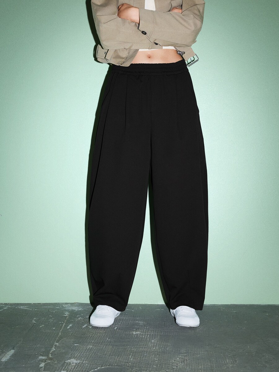 Широкие брюки со складкой спереди Bershka, черный 5 432₽