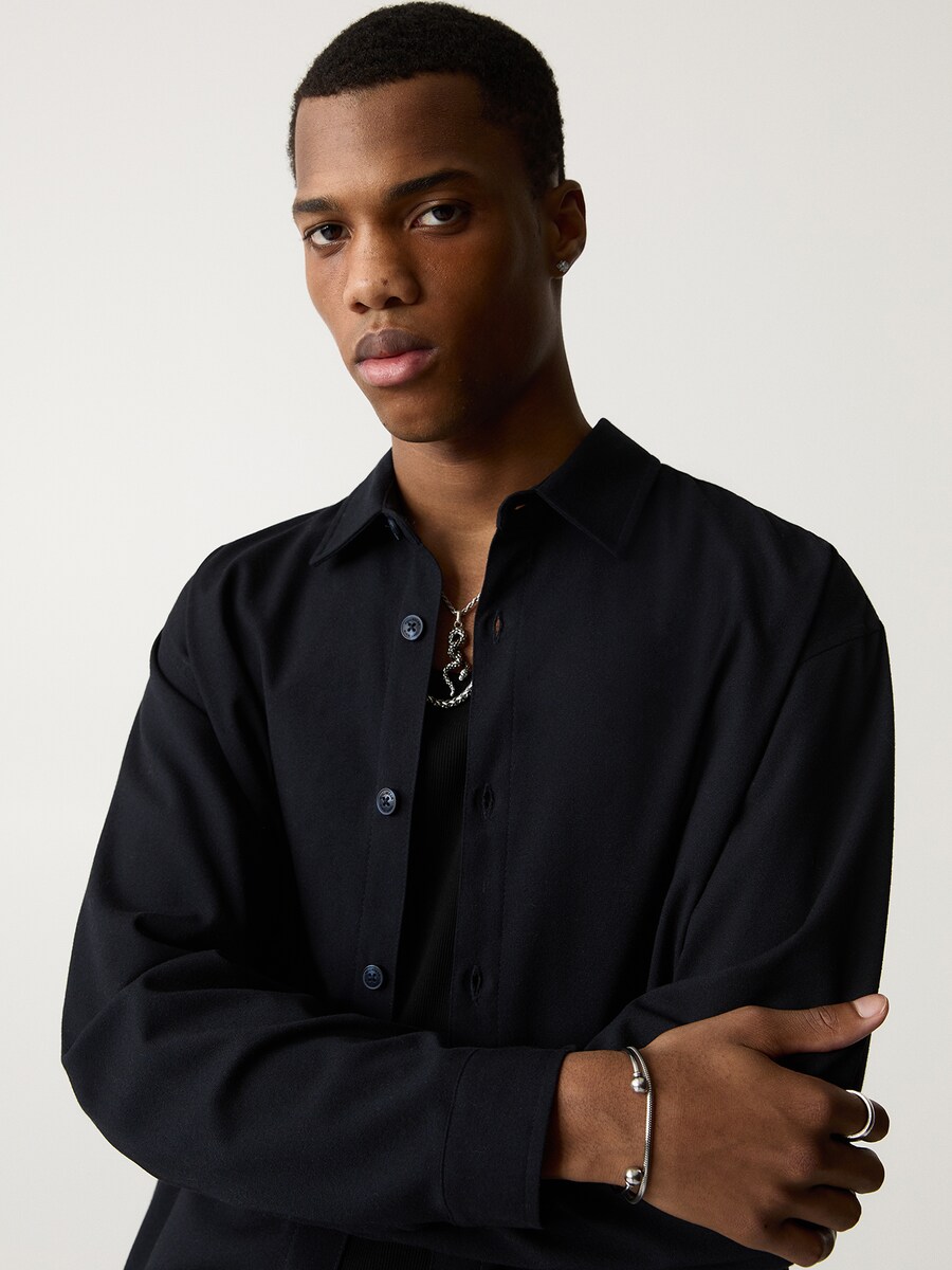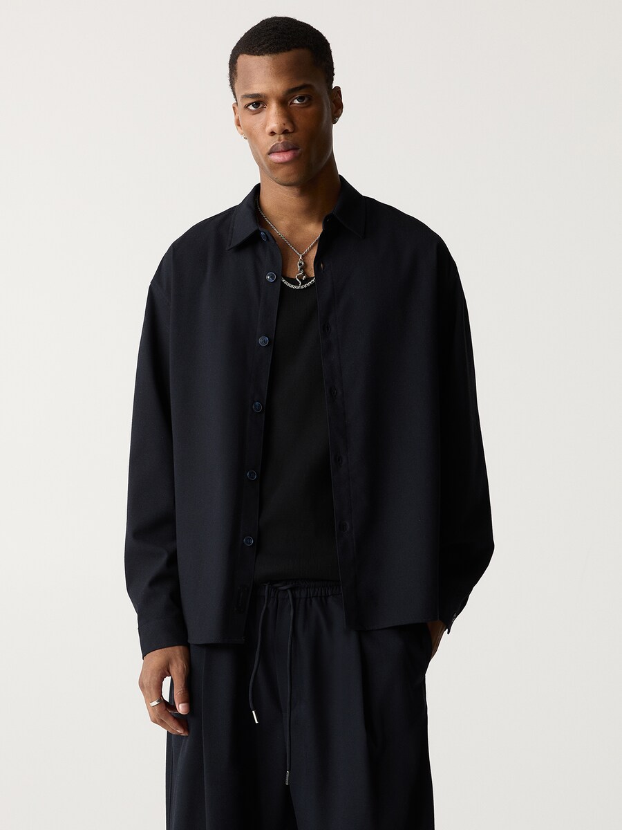 Удобная рубашка на пуговицах Pull&Bear, ночной синий