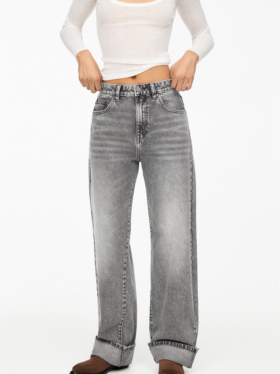 Джинсы с широкими штанинами Pull&Bear, серый деним