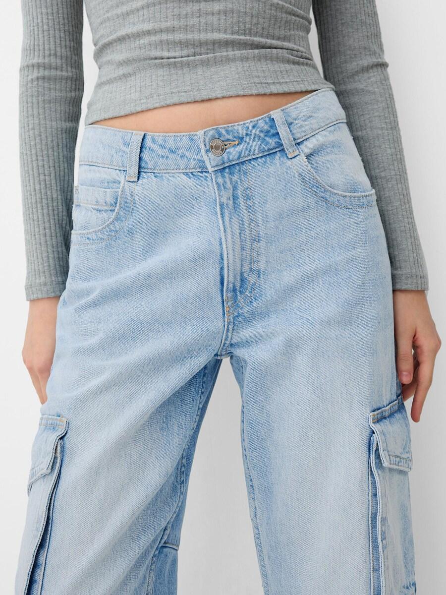 Обычные джинсы-карго Bershka, синий деним 4 923₽