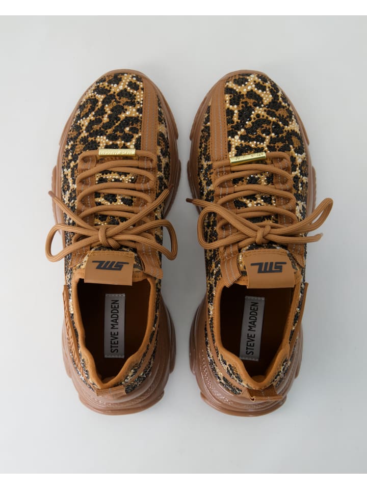 Кроссовки Стива Мэддена Mistica-L для женщин коричневого цвета – настоящее зрелище с леопардовым принтом и блестящими камнями. Верх из текстиля и синтетики обеспечивает удобную посадку, а профилированная подошва обеспечивает надежное сцепление. Идеально подходит для модниц, которые хотят сочетать комфорт с привлекательным дизайном. Идеально сочетается с джинсами или спортивными нарядами. Кроссовки для стильных женщин, которые хотят подчеркнуть свой стиль.