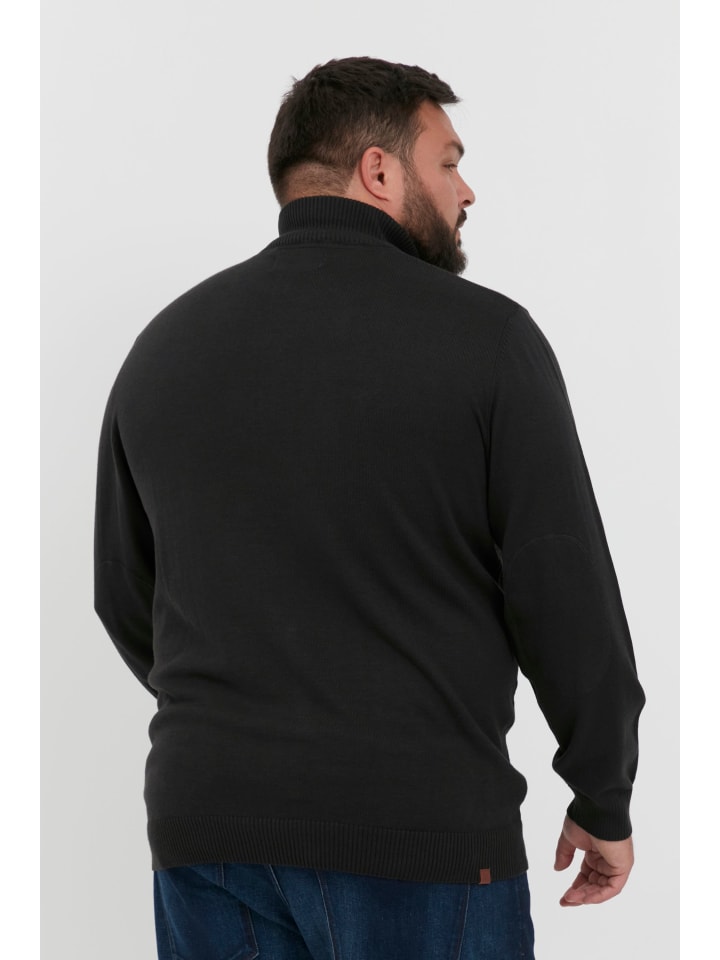ДЕТАЛИ И ОСОБЕННОСТИ: свитер свободного кроя, высокий воротник на молнии, ребристый воротник, кожаные нашивки на подоле и спине