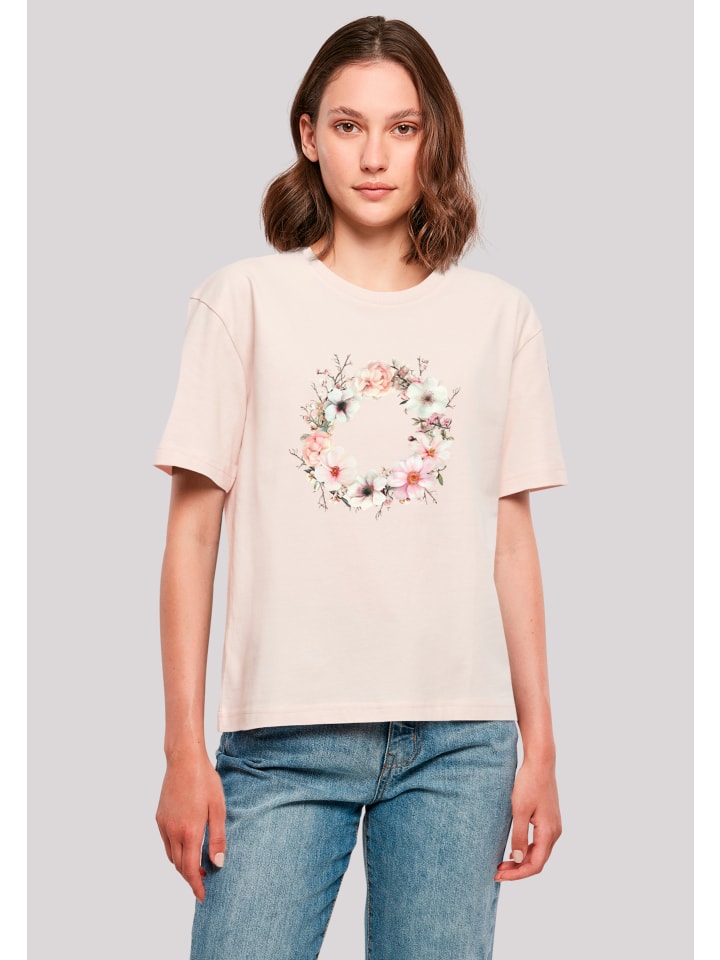 Весенняя футболка на День Святого Валентина, Пасха. Женская футболка большого размера. круглый вырез в рубчик. Удобный и универсальный в сочетании. Розовый цветочный венок - декоративный весенний цветочный круг