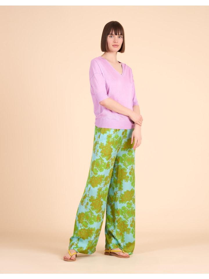Очень красивые и очень длинные брюки с выступающими штанинами, которые отлично смотрятся в сочетании с сандалиями или туфлями-лодочками. Все идет с этими брюками. Принт Oililysey - это роскошный праздник для глаз. - 100% вискоза - Эластичный пояс - Удлиненный - Изготовлен из португальскихматериалов