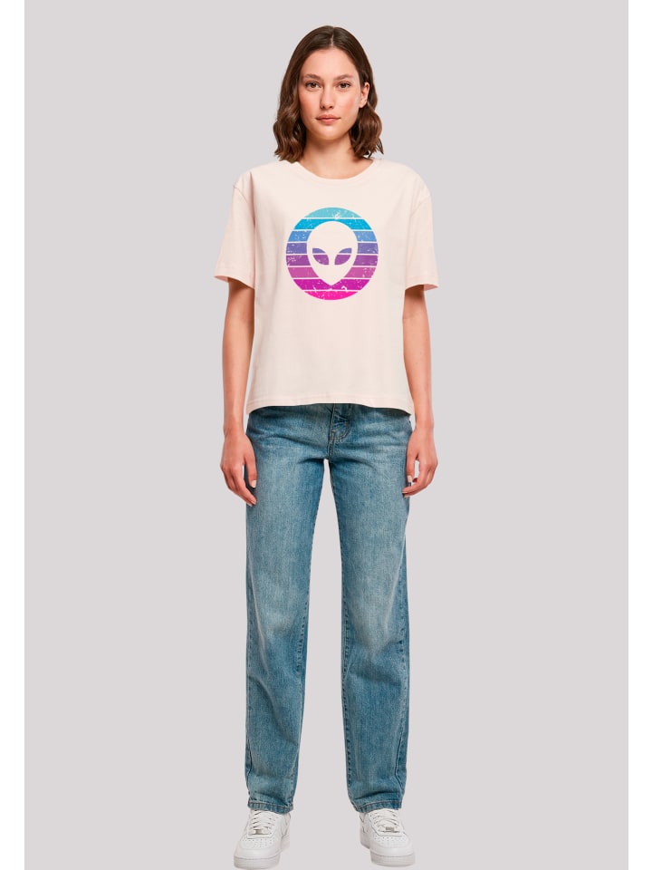 - Розово-фиолетовая футболка с вырезом в виде головы пришельца