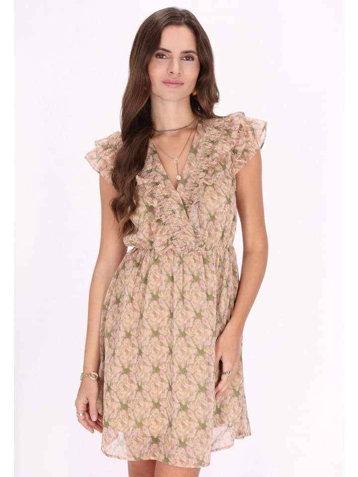 Discover the charm of this wrap dress from our Fashion Look collection. This mini dress has a regular fit, a deep V-neckline and ruffled cap sleeves for an elegant look. The elastic waistband and playful ruffles at the neckline flatter the silhouette, while the lightweight chiffon with a floral print adds a stylish touch, making it perfect for any romantic occasion.