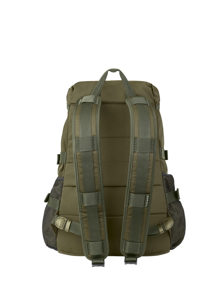 Рюкзак унисекс с застежкой-пряжкой. открытый внутренний карман. Две молнии спереди и две открытые молнии сбоку. Наружные карманы. отсутствует плечевой ремень. Ручка из переработанного полиэтилентерефталата. внутреннее отделение. внешний материал. Внутренняя часть изготовлена из переработанного полиэтилентерефталата. Размеры: 28x37x15 см. Модное изделие 28x37x15 см
