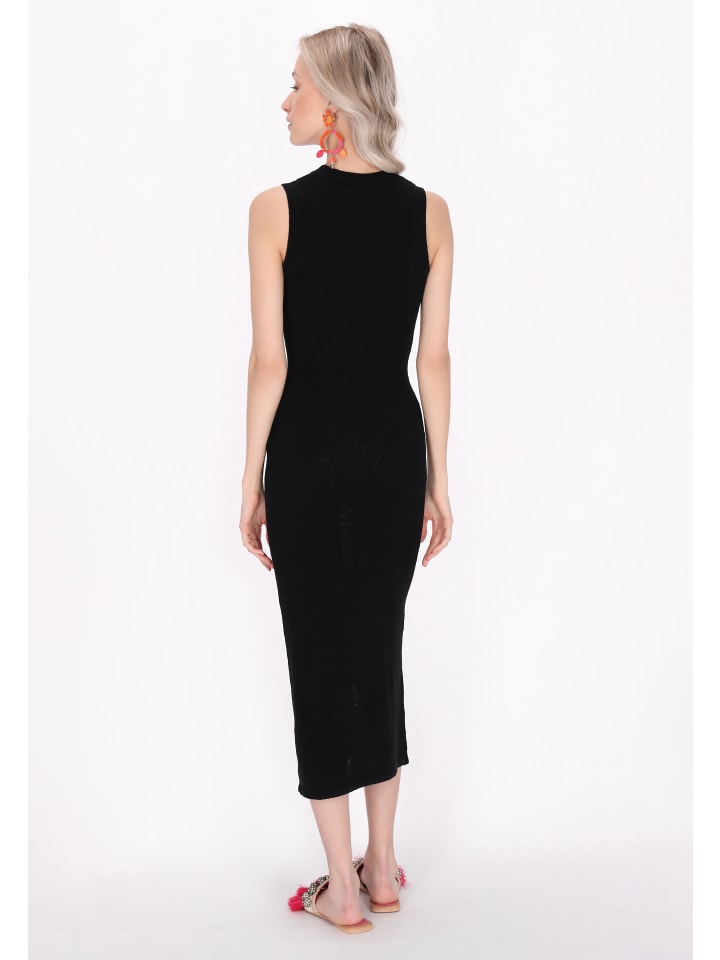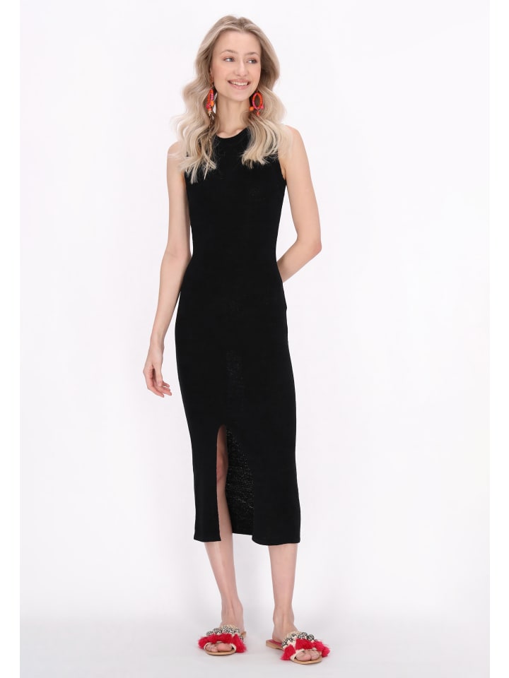 - Slim Fit Midi Dress With Round Neck And Sleeveless