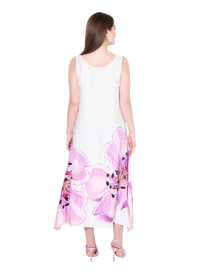 Платье-миди, силуэт тюльпана без рукавов, из мягкой вискозы с цветочным принтом XL. Круглый вырез, удобные широкие бретели, подол на шпильке.материал
