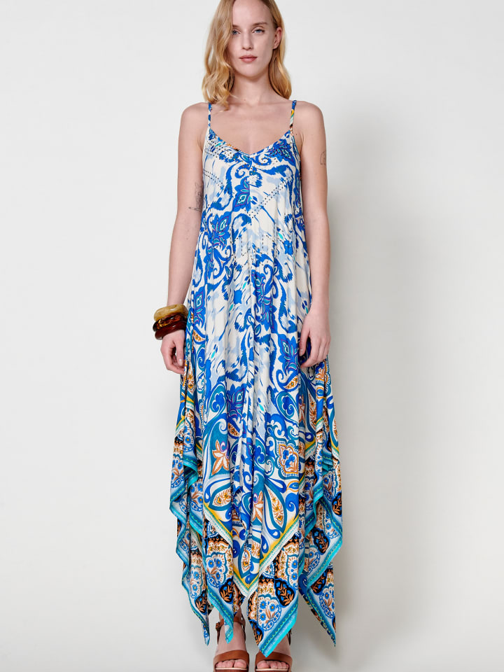 Платье с регулируемыми бретелями. Длинные, с закругленными кончиками. Цветочный принт. Состав 100% вискоза.