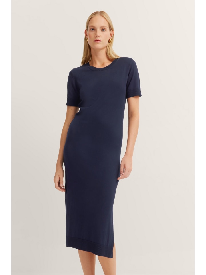 Вязаное платье Bugatti обеспечивает максимальный комфорт благодаря эластичной вискозе и классическому круглому воротнику. Боковые прорези обеспечивают оптимальную свободу движений, а манжеты на рукавах создают стильные детали - ваш идеальный компаньон для создания женственной элегантности в повседневной жизни.