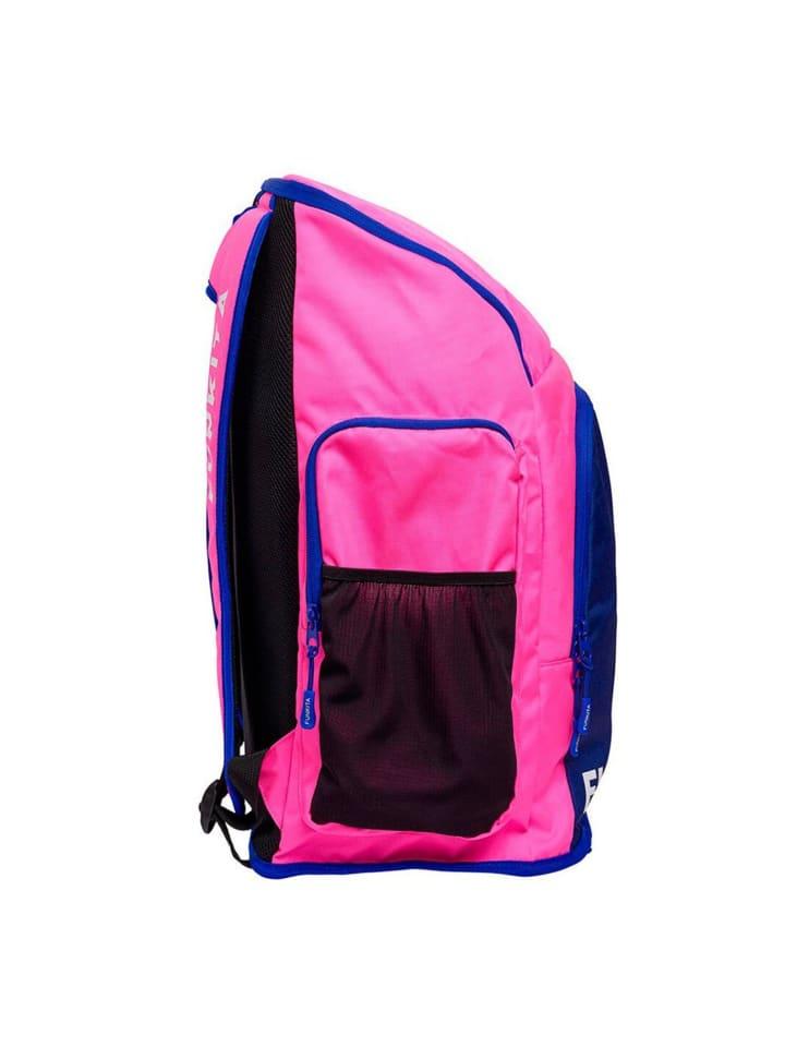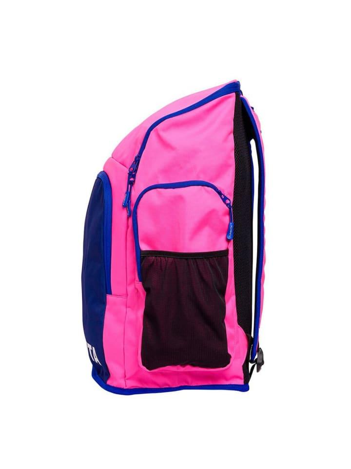 Рюкзак Funky Space Case 40L от Funkita необходим каждому пловцу для транспортировки плавательного снаряжения. На передней части этого рюкзака расположен большой металлический серебристый логотип. Этот рюкзак вместимостью 40 литров идеально подойдет активному пловцу, которому требуется много снаряжения, или часто плавающему человеку, который ищет аккуратный способ хранения своего снаряжения. Имеет большой передний карман на молнии и отделение для очков с тканевой подкладкой. Имеются два боковых сетчатых кармана для бутылок и большой карман на молнии сбоку. Большое основное отделение с верхней загрузкой оснащено карманом для ноутбука и небольшим карманом, а также двумя внутренними отделениями для разделения ваших вещей. Имеет удобную мягкую спинку и регулируемые плечевые ремни. Внутренняя часть сумки ярко-розовая с черной окантовкой.