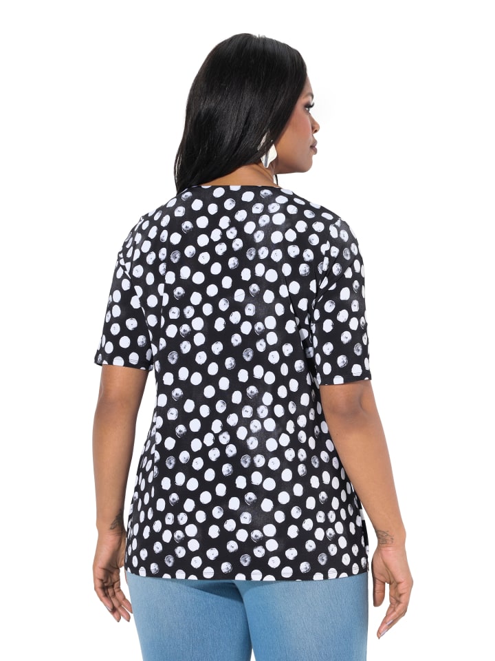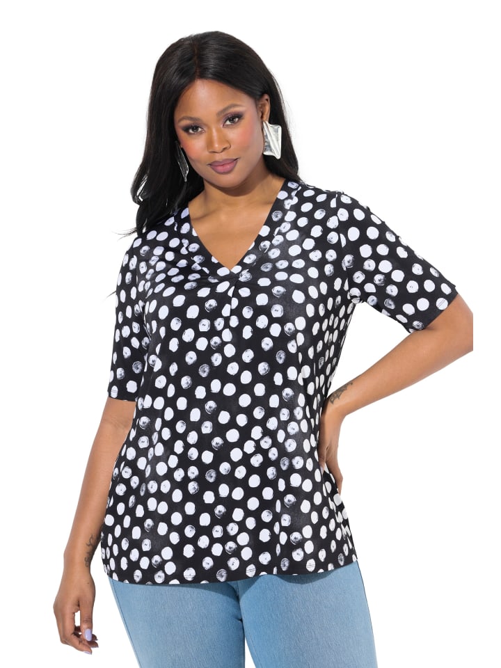 Slinky-Shirt, Classic Fit, aus edlem Slinky-Jersey mit Dot-Design. V-образный вырез с декоративной складкой, полурукав.материал