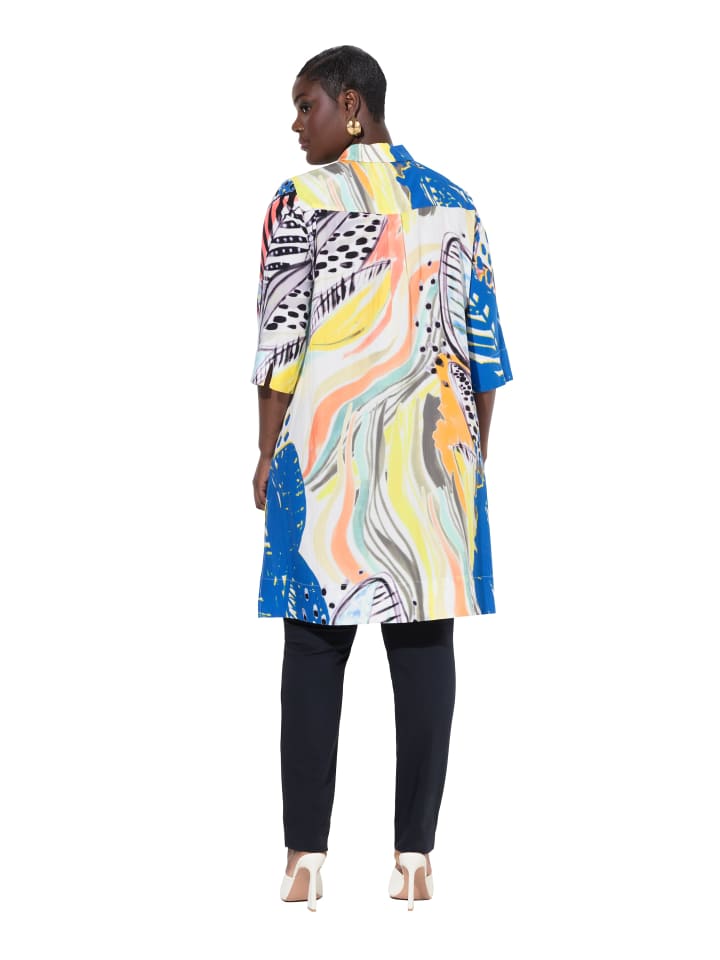 Длинная блузка из лиоцелла, удлиненной формы А-силуэта, из натурального мягкого лиоцелла с современным принтом. Воротник рубашки, потайная планка на пуговицах, боковые карманы на швах. Нижняя складка сзади, рукав 3/4 с разрезом.материал