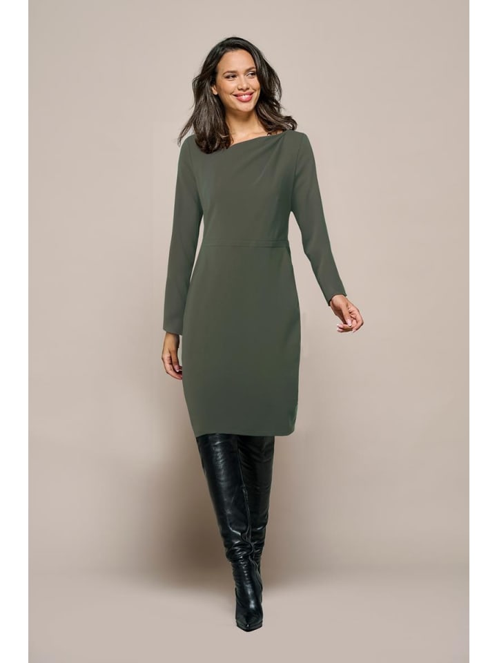 В оливково-зеленом платье Novelle от Mart Visser вы привлечете всеобщее внимание. Это облегающее платье излучает класс и элегантность, не жертвуя комфортом. Платье, сшитое из высококачественного трикотажа, относится к категории простых в уходе, что обеспечивает как роскошь, так и практичность. Зеленое платье имеет длинные рукава и ниспадает выше колена, что делает его идеальным для различных случаев. Собираетесь ли вы на вечеринку или деловую встречу, платье Новелла - это всегда подходящий выбор. Платье имеет практичные элементы, такие как боковые карманы, скрытая молния сзади и разрез, которые одновременно стильны и практичны. Застежка-молния роскошно отделана узким кантом, а карманы красиво подчеркивают силуэт. Также обратите внимание на изысканные элементы дизайна, такие как асимметричный вырез, заниженные наплечники и узкий пояс, подчеркивающий фигуру. Платье полностью на подкладке, что обеспечивает дополнительный комфорт и красивый силуэт. Независимо от того, где вы носите платье Novelle, вы всегда производите впечатление ухоженного и элегантного!материал