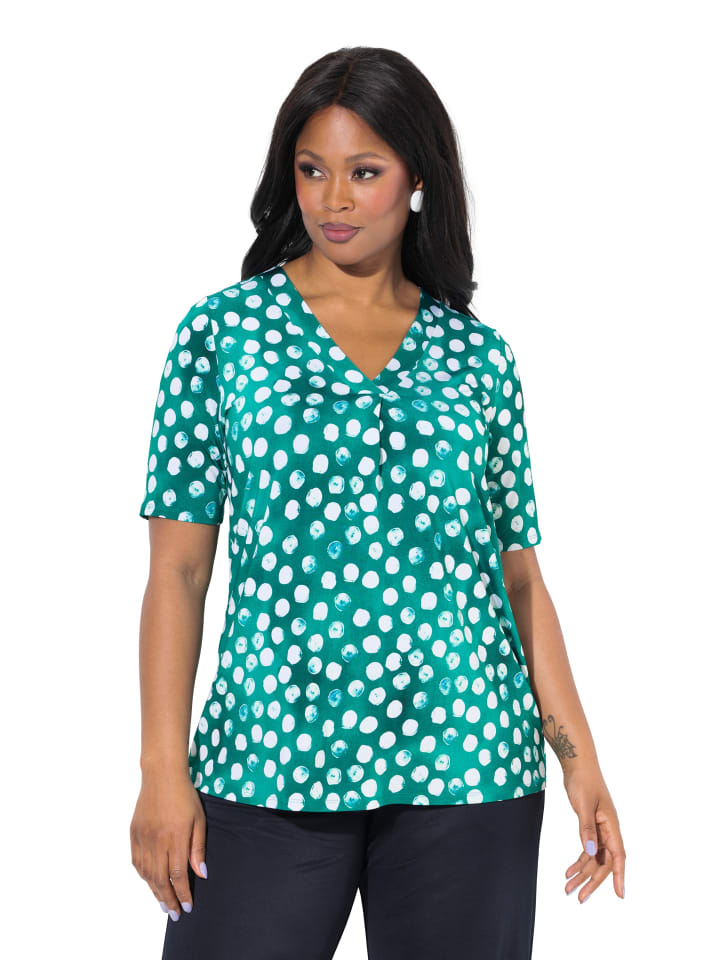 Slinky-Shirt, Classic Fit, aus edlem Slinky-Jersey mit Dot-Design. V-образный вырез с декоративной складкой, полурукав.материал