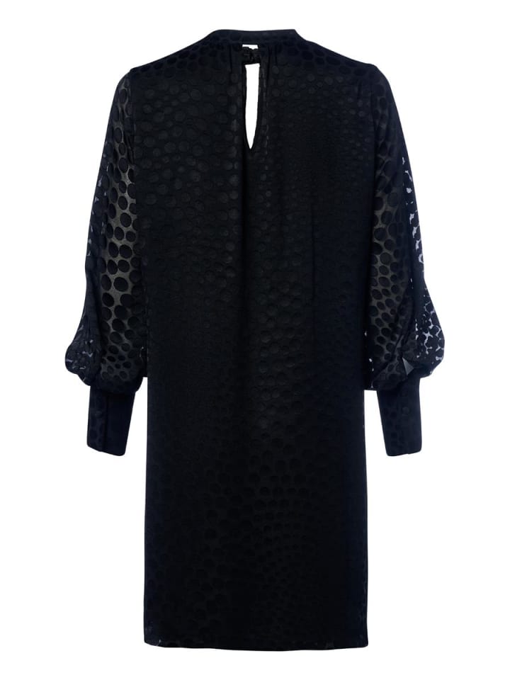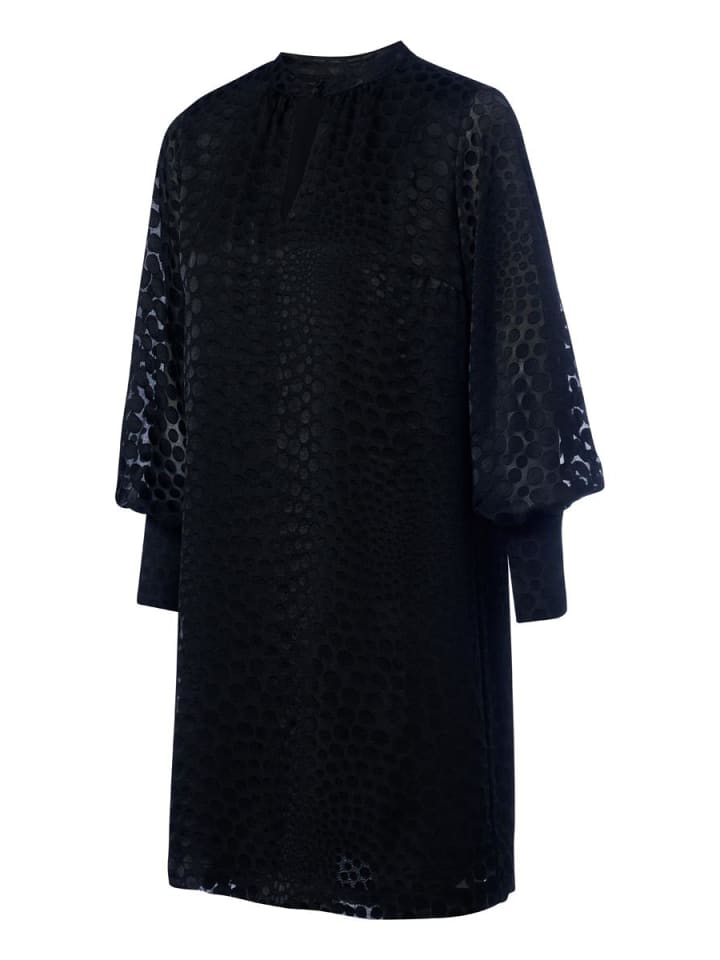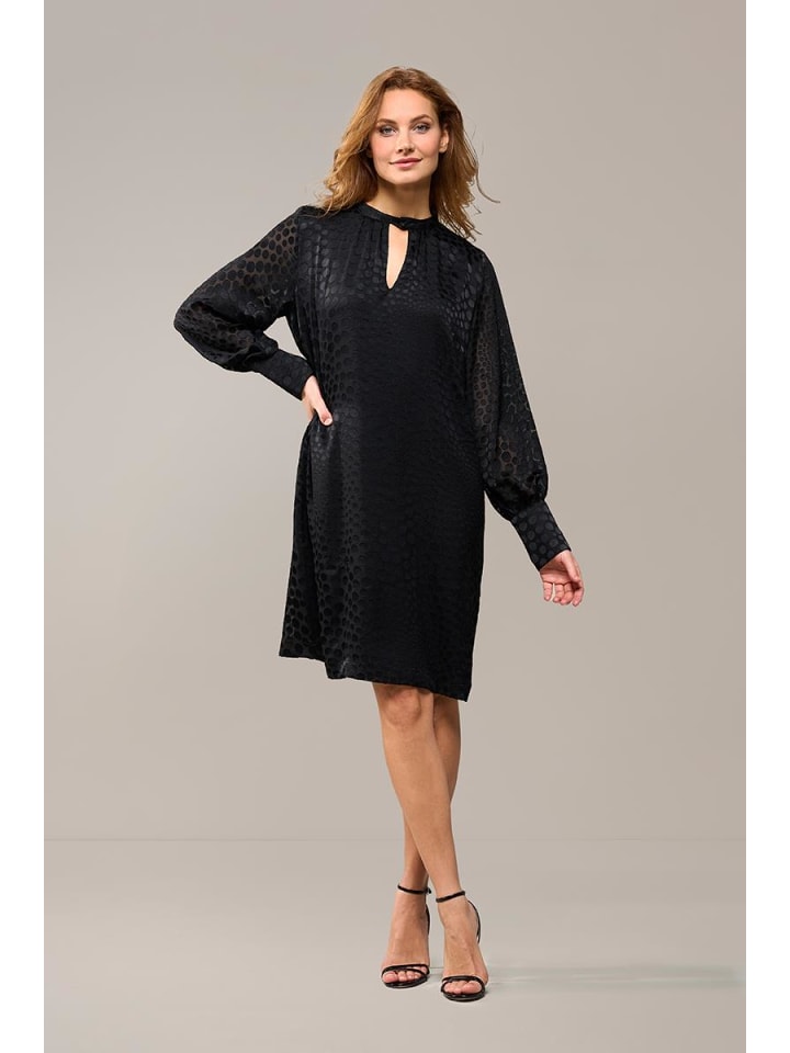 В этом сезоне выбирайте платье Abilene классического черного цвета. Это стильное платье без особых усилий сочетает в себе элегантность и комфорт с великолепным блестящим рисунком в горошек на полупрозрачной ткани. Дизайн отличается воротником-стойкой и тонкими отверстиями для замочной скважины спереди и сзади, что создает изысканный и неповторимый образ. Длинные рукава-воздушные шары и широкие манжеты придают модный вид, а длина до колен и свободная посадка создают ощущение комфорта при ношении. Блестящий точечный узор придает платью роскошный дизайнерский вид и делает его по-настоящему привлекательным. Сочетайте платье с грубыми ботинками и джинсовой курткой в течение дня, чтобы создать повседневный наряд, или наденьте его вечером на элегантных каблуках на летний ужин или вечерний неторопливый напиток. Пояс может помочь создать привлекательную фигуру в виде песочных часов, но платье также можно носить комфортно свободным. Модный совет: Также откройте для себя зеленый вариант этого платья или выберите стильную черную блузку с таким же игривым рисунком в горошек!материал
