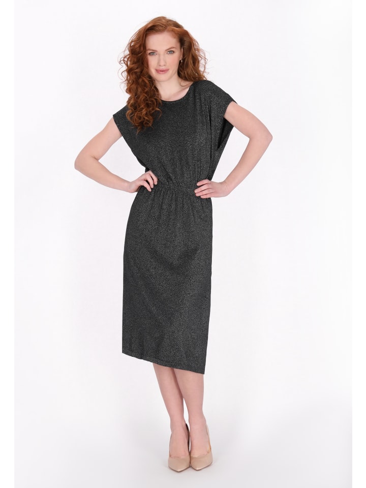 - Regular Fit Midi Dress With Scoop Neck And Cap Sleeves