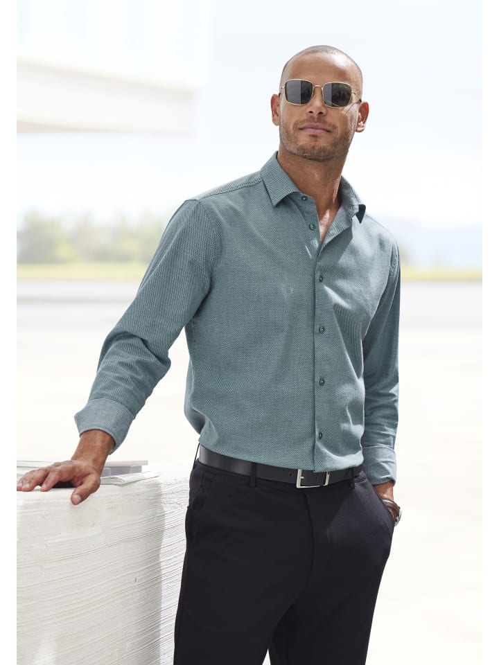 С каркасом: мужская рубашка с длинным рукавом от HIS. Специальная форма воротника: воротник Кент. С защипами сзади для большей свободы движений. Можно комбинировать разными способами. Эластичная хлопковая смесь.