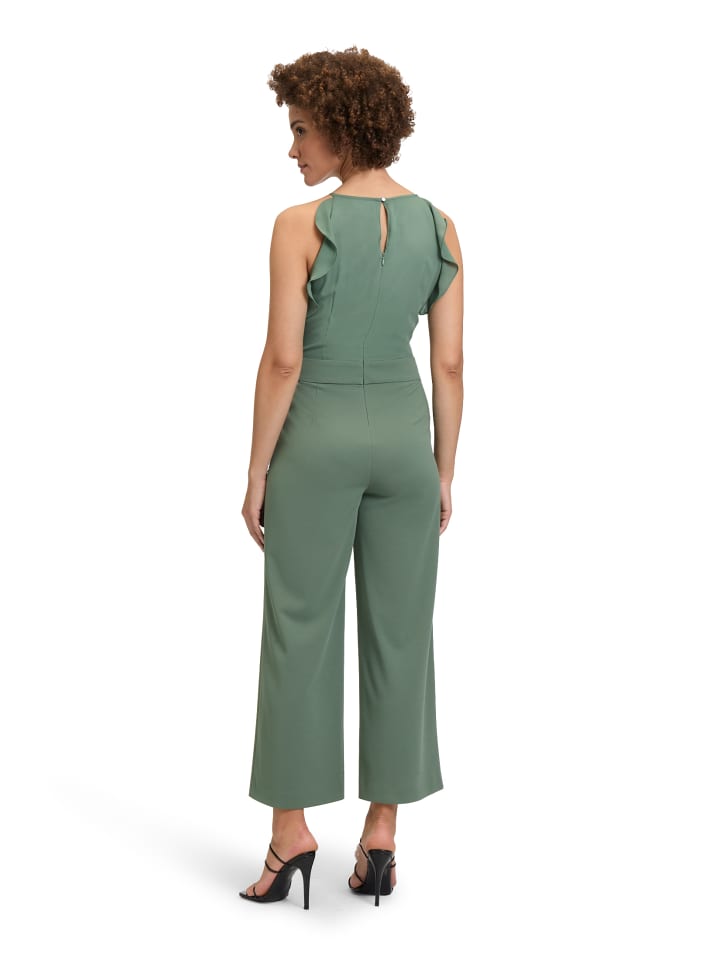 Этот комбинезон от бренда Vera Mont из изысканного материала, непревзойденный по внешнему виду и удобству ношения, выполнен из изысканного материала. Сочетание материалов из трикотажа и шифона делает расклешенный комбинезон праздничным дополнением. Американский вырез декорирован воланами, что делает его идеальным украшением. Ремешок для галстука облегает комбинезон, подчеркивая фигуру владельца. Получи образ!