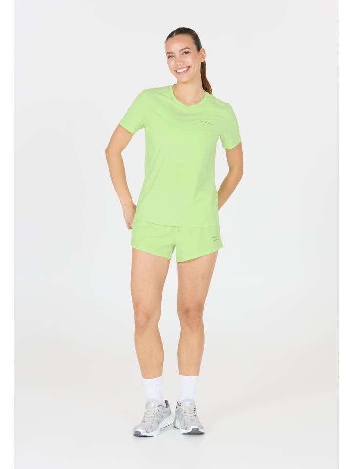 Бег и тренировки на свежем воздухе - это особенно весело с женской футболкой "Нан" с короткими рукавами! 4-полосная растяжка из смеси полиэстера и спандекса гарантирует, что вы сможете двигаться без проблем во время тренировки. В то же время он воздухопроницаемый и обеспечивает еще лучшую вентиляцию с помощью сетчатых вставок под мышками. Рубашка имеет приятный легкий вес и очень быстро сохнет благодаря технологии Quick Dry. Чтобы улучшить видимость при тусклом освещении, рубашка оснащена удобными отражателями.