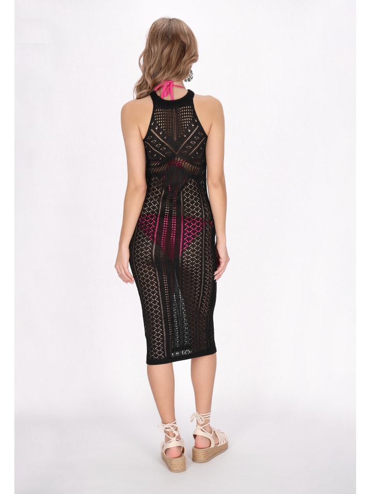 - Slim Fit Midi Dress With Halter Neck And Sleeveless