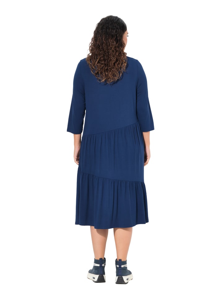 Платье-миди из джерси, удобная А-силуэта, из эластичного вискозного джерси с диагональными воланами. Закругленный V-образный вырез, рукав 3/4.материал