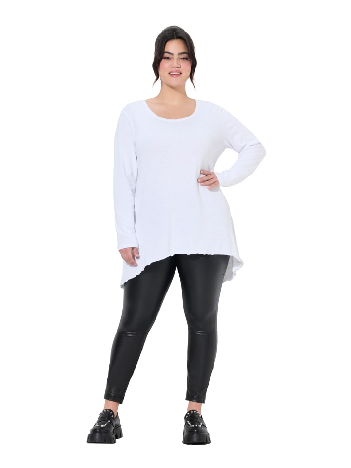 Трикотажная рубашка А-силуэта из мягкого тонкого трикотажа. Круглый вырез, длинный рукав, подол сзади длиннее.материал