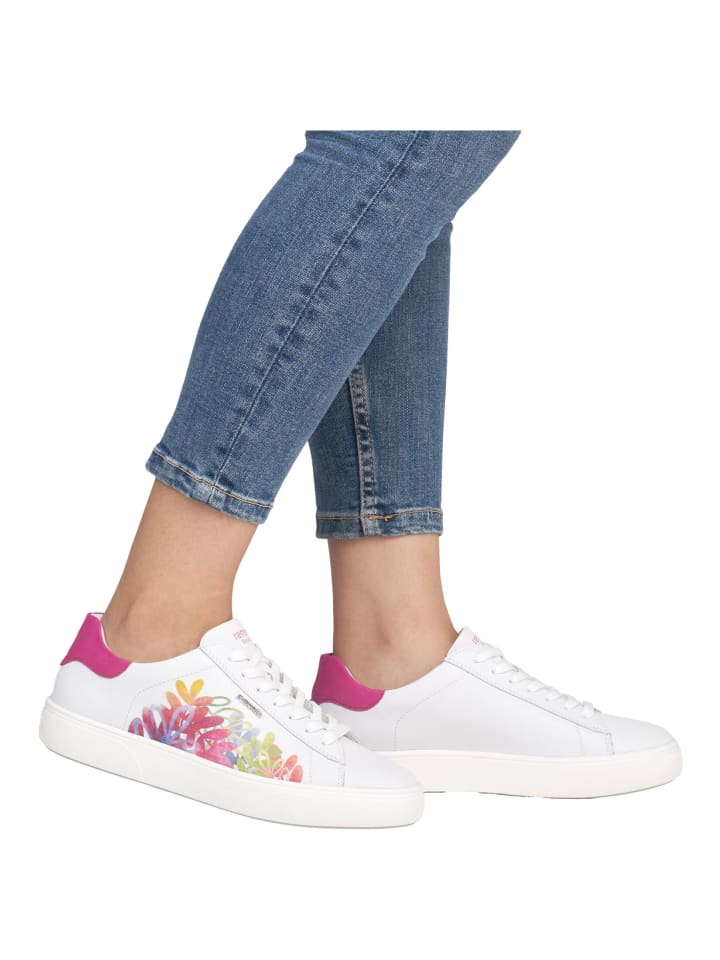 В этих женских кроссовках Remonte вы сочетаете стильную непринужденность со стильным внешним видом. При этом шнуровка всегда обеспечивает оптимальную посадку. Разноцветный принт на боку с цветочным узором придает обуви гармоничный вид. Благодаря технологии Lite n Soft у вас также есть легкая подошва и мягкая сменная стелька для максимального комфорта. Он скроен по размеру для комфорта и доступен в больших размерах.