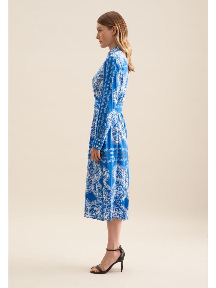 Завершит ваш наряд и не должна отсутствовать ни в одном гардеробе: это платье-миди из шелка с вышивкой отличается модным кроем. Тканая вискоза изготовлена из 100% вискозы - идеального холста для ваших собственных комбинаций. Платье современного кроя облегающее и не такое облегающее, что создает оптимальный комфорт при ношении. Шикарный принт с рисунком делает его обязательным атрибутом. С этим стильным платьем любой образ станет привлекательным. Стильное и элегантное, это платье с длинным рукавом всегда идеально ложится на вас. Воротник блузки-рубашки подчеркивает женственно-классический характер. В качестве незаметной детали также были пришиты изысканные перламутровые пуговицы.