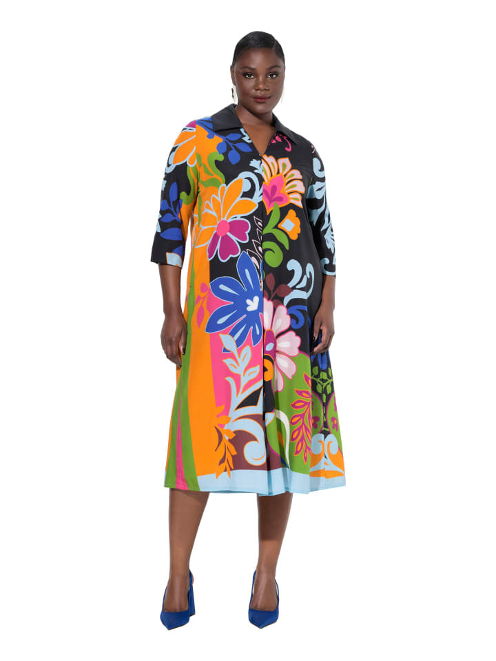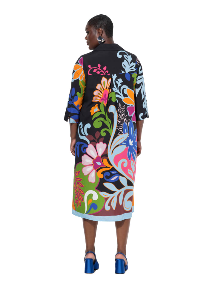 Платье-миди из лиоцелла, А-силуэта, из натурального мягкого лиоцелла с цветочным рисунком. Воротник рубашки с V-образным вырезом и декоративной складкой. Рукава 3/4 с манжетами.материал