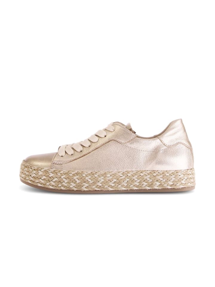 Модные модные кроссовки Gabor бежевого цвета low - оптимальный выбор для стильных дам. Верх выполнен из высококачественной эффектной кожи, что придает кроссовкам безошибочный вид. Ширина обуви F (нормальная) означает, что кроссовки идеально подходят для женских ног от узких до нормальных. Эта модель отличается сменной стелькой из переработанного материала, которая не только способствует комфорту, но и поддерживает экологически ответственный подход. Благодаря удобному оснащению, владелец радуется расширенной поверхности выступа в области груди и большему комфорту. Модель оснащена сменной стелькой, которую можно легко заменить на ортопедические стельки.материал