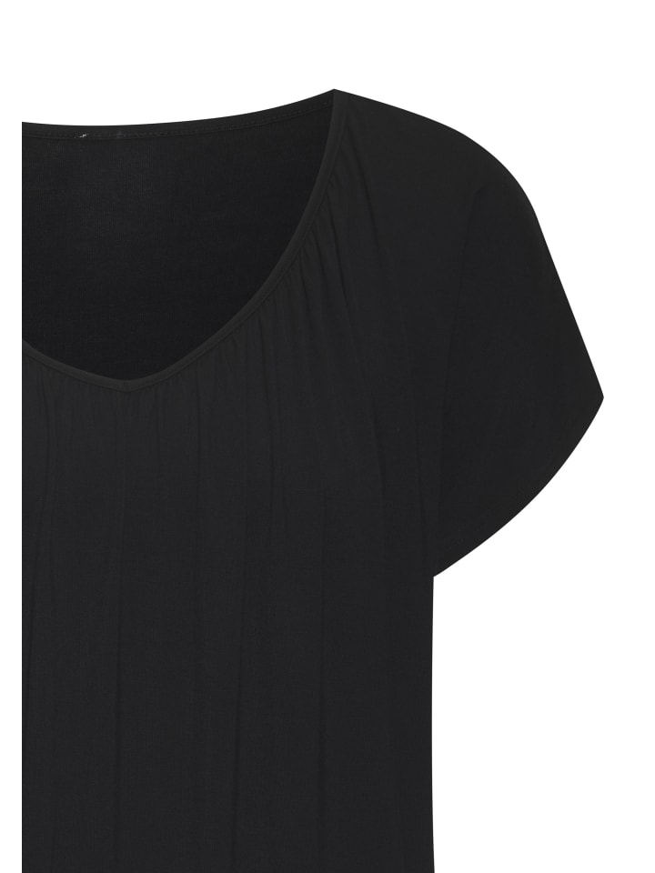 Футболка от Lascana. Вырез с круглым вырезом и сборками. Подол рубашки на резинке. Свободная посадка. Мягкий струящийся трикотаж с вискозой.
