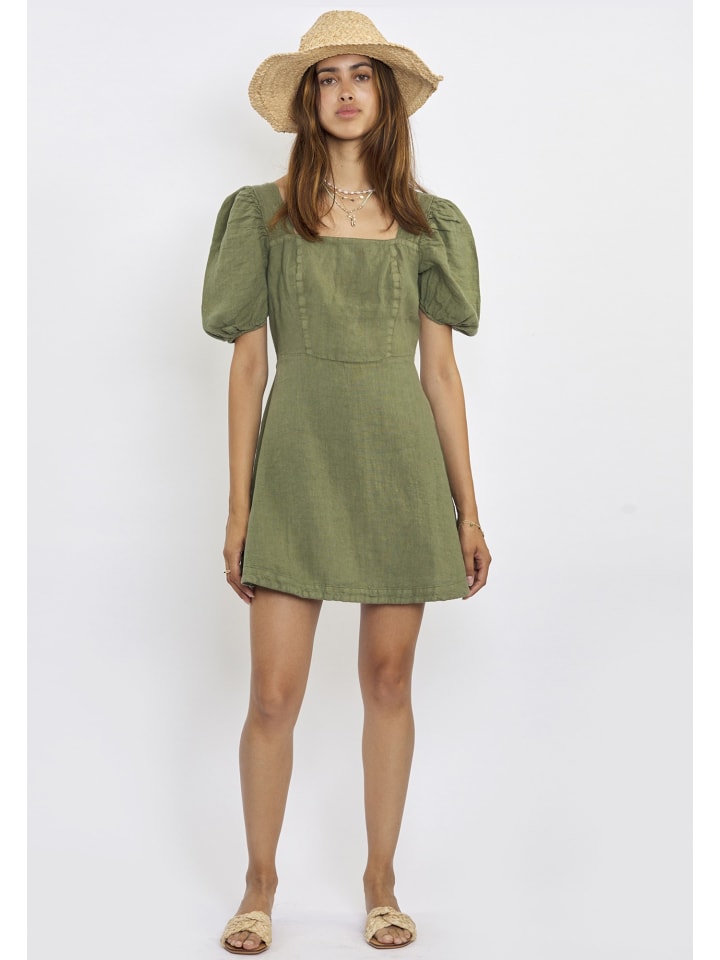 Льняное платье 'Bella' от Freshlions - идеальное сочетание элегантности и комфорта. Благодаря привлекательному крою и воздушной льняной ткани это идеальная модель для теплых летних дней. Платье имеет короткий крой и идеально подходит для теплых летних дней. Супер обязательное украшение для отдыха и элегантных случаев.