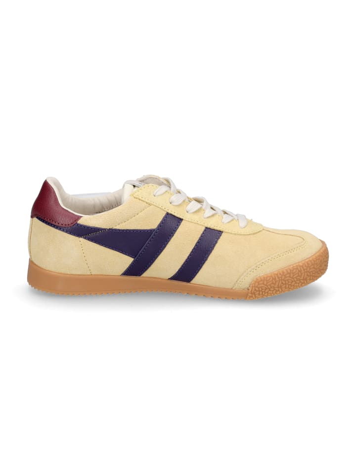Женские кроссовки Gola из грубой кожи желтого цвета и гладкой сливовой кожи со шнуровкой и сменной махровой стелькой.материал