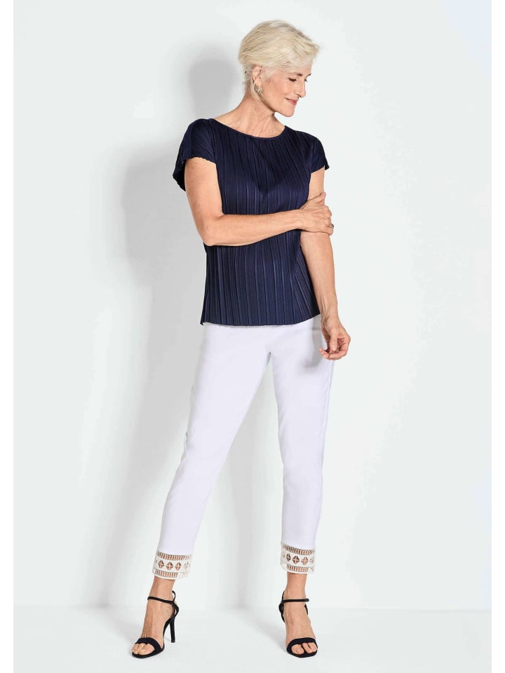 Плиссированная рубашка с красивым цветочным принтом, которая приобретает изысканный эффект благодаря плиссированной облегающей одежде. Немного более широкий крой с открытыми плечами и женственным вырезом-лодочкой подчеркивает фигуру особенно выгодно. Эластичный материал удобного качества при этом носит приятную мягкость и прост в уходе. Длина около 64 см в гр. 46, около 60 см в гр. 23.