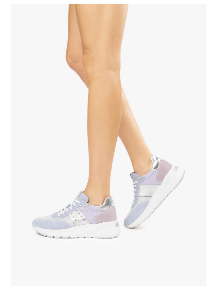 Вы просто не можете сказать "нет" этим стильным кроссовкам от Nero Giardini! Модная обувь отличается стильным сочетанием кожи и текстиля в многослойном стиле. Завершают все это изысканные металлические накладки. При необходимости стельку с мягкой подкладкой, которая также сделана из кожи, можно вынуть или заменить. Шнуровка позволяет модели индивидуально прилегать к ноге, обеспечивая оптимальную поддержку.