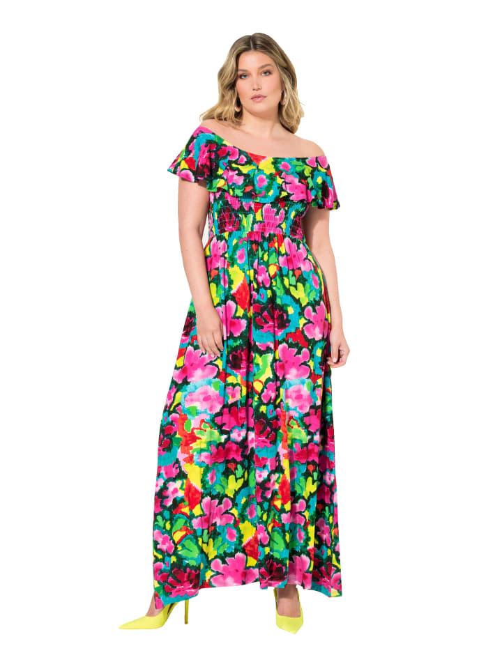 Макси-платье из джерси с цветочным принтом. Эластичный мокрый бюст с воланами на вырезе Кармен - также можно носить на плечах. Круглый вырез, полурукав.материалы
