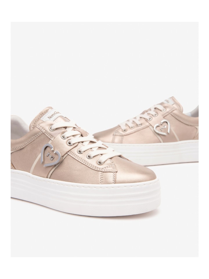 Этот модный комбинезон на платформе из высококачественной кожи от Nero Giardini сделает вашу повседневную жизнь стильной. Простой дизайн позволяет сочетать его с бесчисленными нарядами. Симпатичная подвеска в виде сердечка сбоку придает обуви особый шарм и привлекает всеобщее внимание! Шнуровка также обеспечивает идеальную посадку.