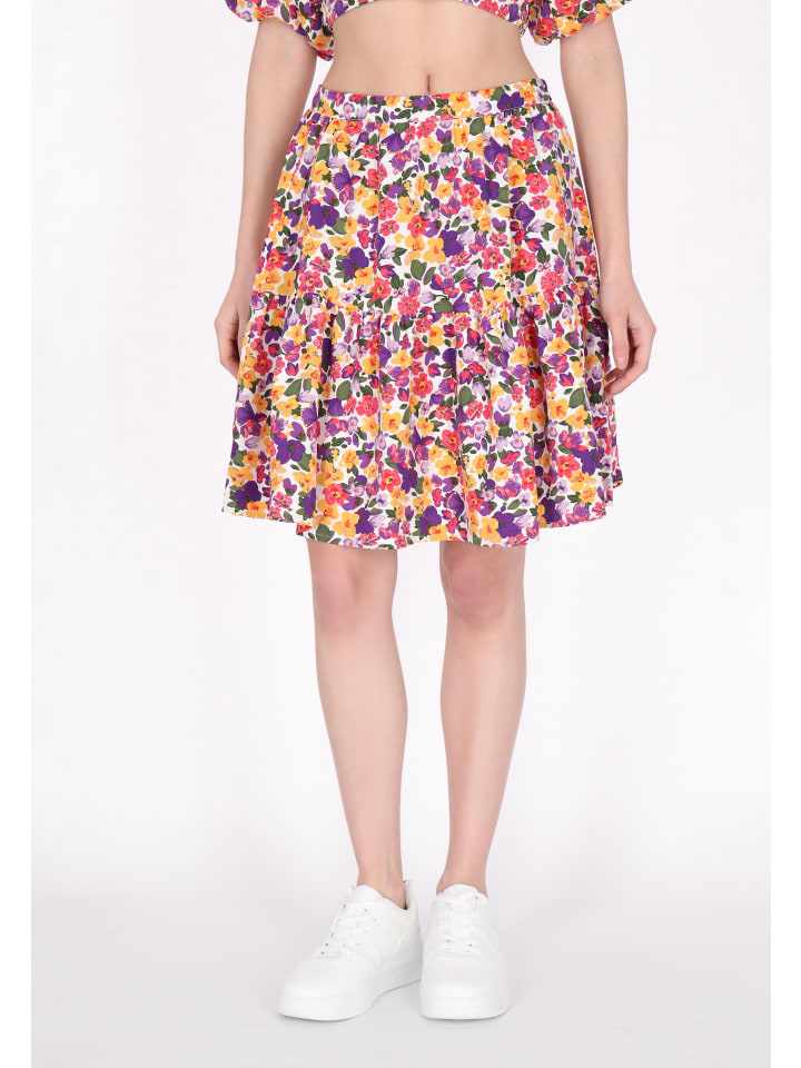 Introducing the fashionable A-line mini skirt from the Fashion Look Collection. It features a playful ruffled hem and a convenient zip fastening. Crafted from a fabric adorned with a delightful floral print, this feminine skirt is ideal for fashion lovers who care about their stylish look.