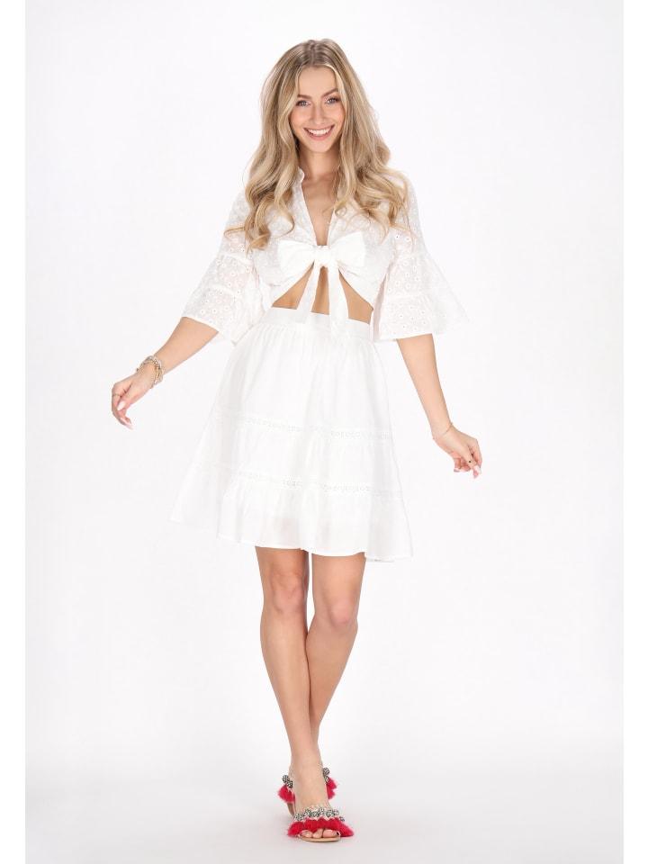 Enrich your closet with this stylish regular cut mini skirt. It exudes boho charm, perfect for a festival collection. With crinkle detailing and lace ribbon accents, this skirt presents an ethno touch. With an elastic waistband, it provides comfort. It is part of the Festival Collection.