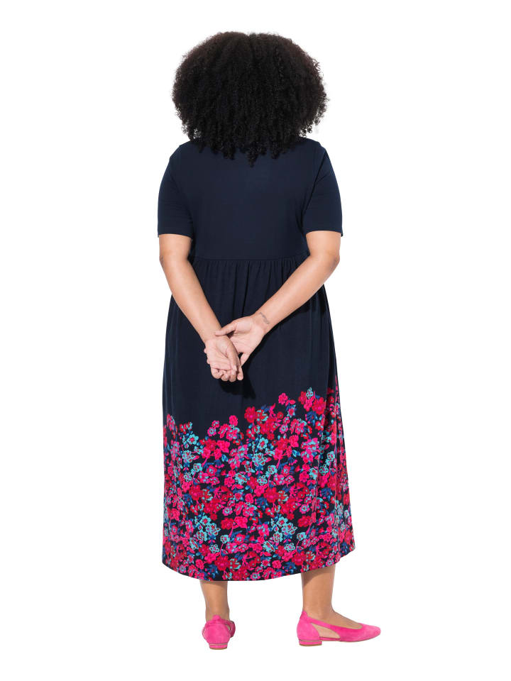Платье-макси из джерси, удобная А-силуэта, с декоративным рисунком. Вырез каре, эластичный эмпирический шов, карманы с боковым швом. Полурукав.материалы