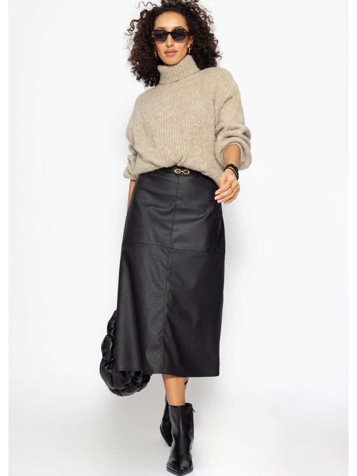 Эта юбка из искусственной кожи привлекает своей привлекательной А-силуэтом, подчеркивающим женственный силуэт и подчеркивающим неподвластную времени элегантность. Эластичная искусственная кожа не только обеспечивает стильный внешний вид, но и обеспечивает высокий комфорт при ношении. Эластичный пояс гарантирует оптимальную посадку и дополнительный комфорт. Средняя длина, заканчивающаяся чуть ниже колена, идеально сочетает в себе стиль и удобство. Мелкие детали шва придают дизайну современный вид и придают юбке текстуру. Будь то элегантная блузка, уютный вязаный свитер или простой топ, эта юбка универсальна в сочетании и подойдет к любому случаю.