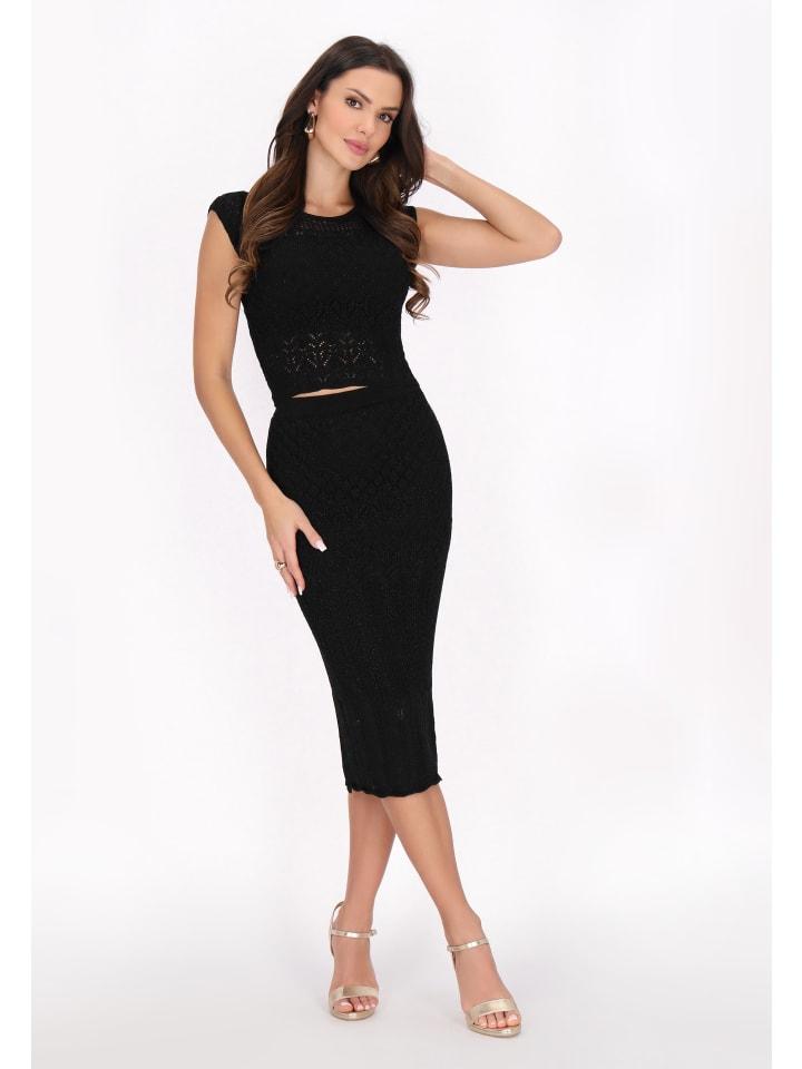 Elevate your everyday fashion collection with this stylish, fitted midi skirt. Made from comfortable jersey, it features an openwork pattern and metallic thread for a chic touch. The unique diamond shapes and vertical lines create a fashionable silhouette, making it perfect for casual outings. Part of the Fashion Look collection.
