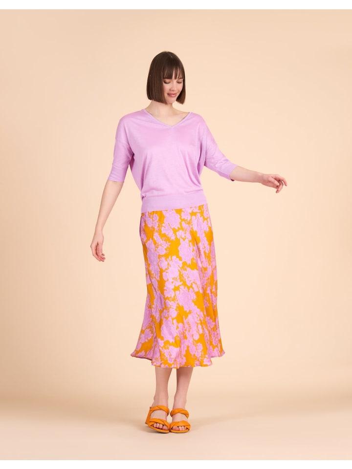 Очаровательная юбка-тарелка средней длины из мягкого мерцающего материала для особых случаев. Принт Oililysey насыщенный и роскошный - настоящий праздник для глаз. - 100% вискозный эластичный пояс - Изготовлен из португальскихматериалов