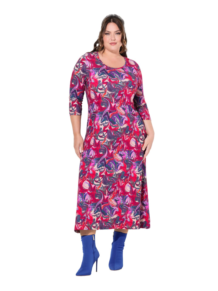 Платье из трикотажа А-силуэта со сплошным принтом. Удобная посадка с круглым вырезом, рукавами 3/4. Карманы с боковым швом.материал