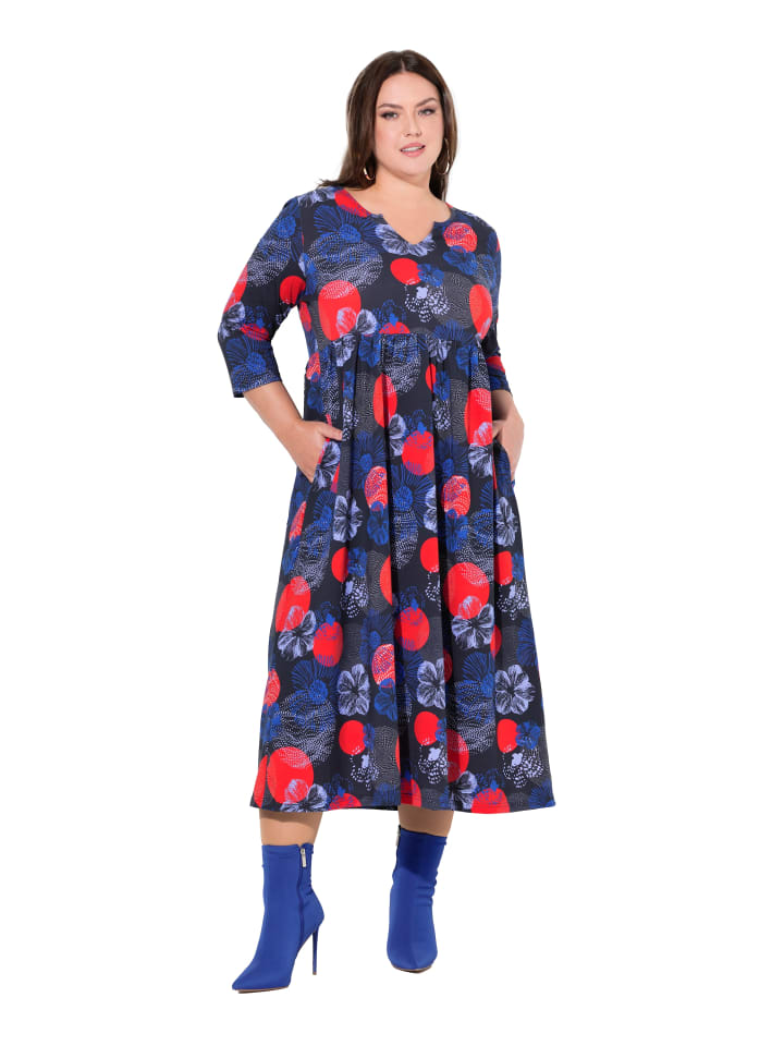 Платье из трикотажа А-силуэта со сплошным принтом. Удобная посадка с вырезом туники, эластичный поперечный шов, рукава 3/4. Карманы с боковым швом.материал