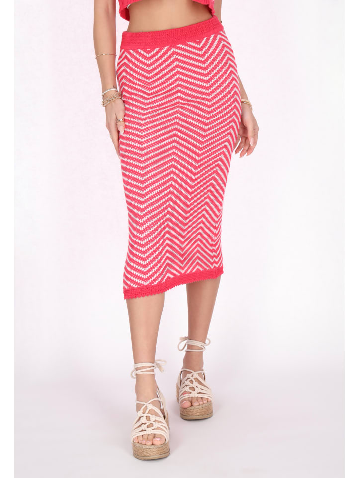 Elevate your style with this elegant knitted skirt, designed for the fashion-oriented. It showcases a retro herringbone pattern, a fitted cut and a trendy midi length. The comfortable elasticated waistband provides ease of wear, making it ideal for festivals or casual outings, keeping you in style all day long. It is part of the Boho Collection.