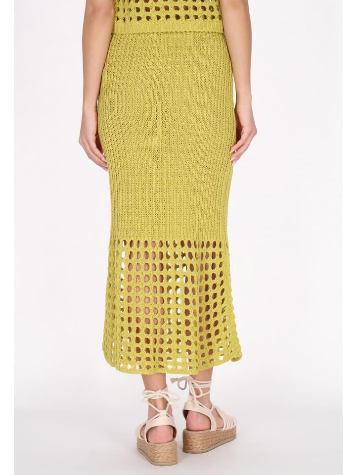 Transform your style with this stunning midi skirt, combining a slim fit with a flared bottom for a chic look. Featuring an intricate openwork pattern, this knit model exudes an ethno vibe. This knitted skirt will be perfect for festival occasions. It is part of the Boho Collection.
